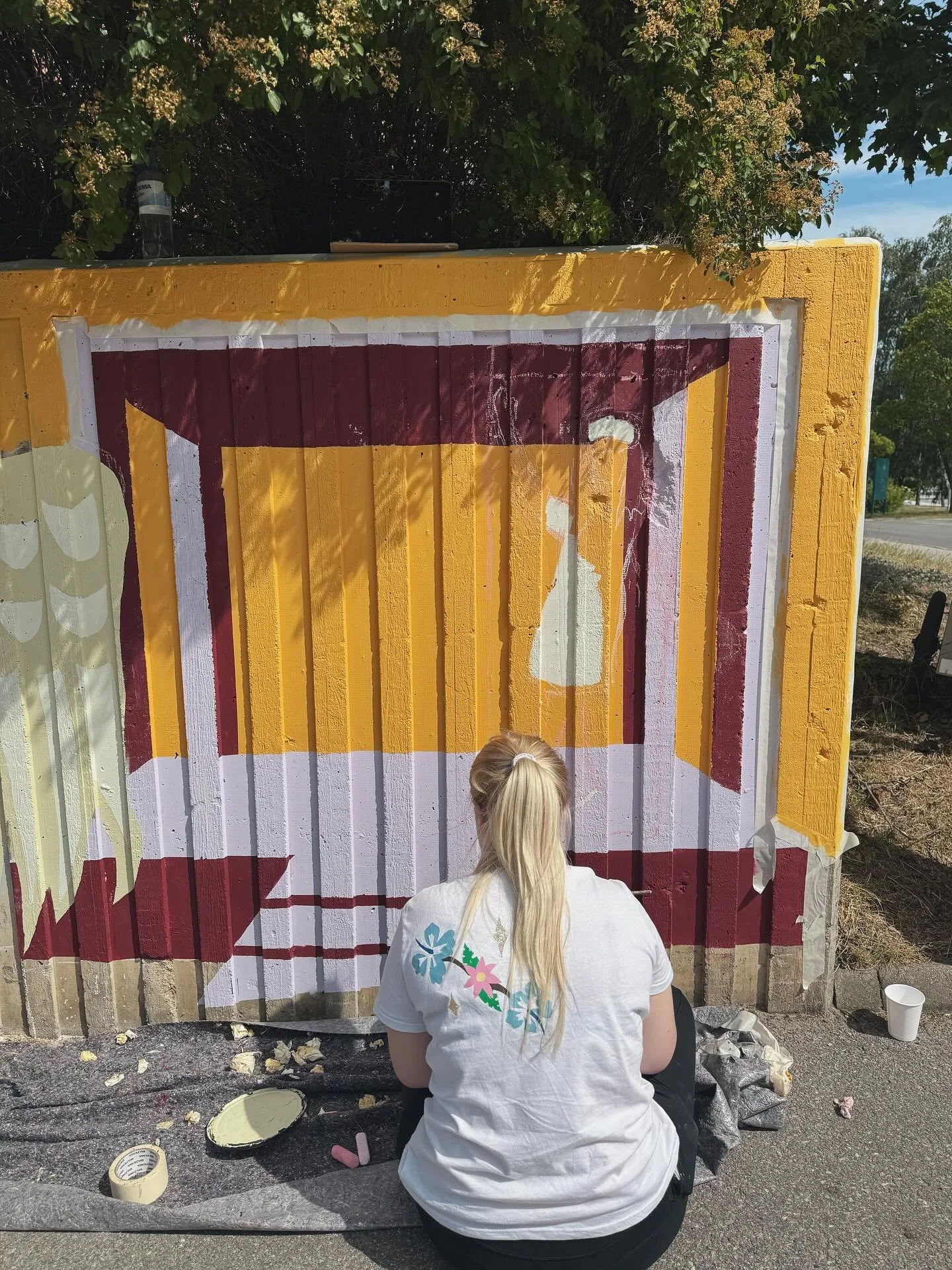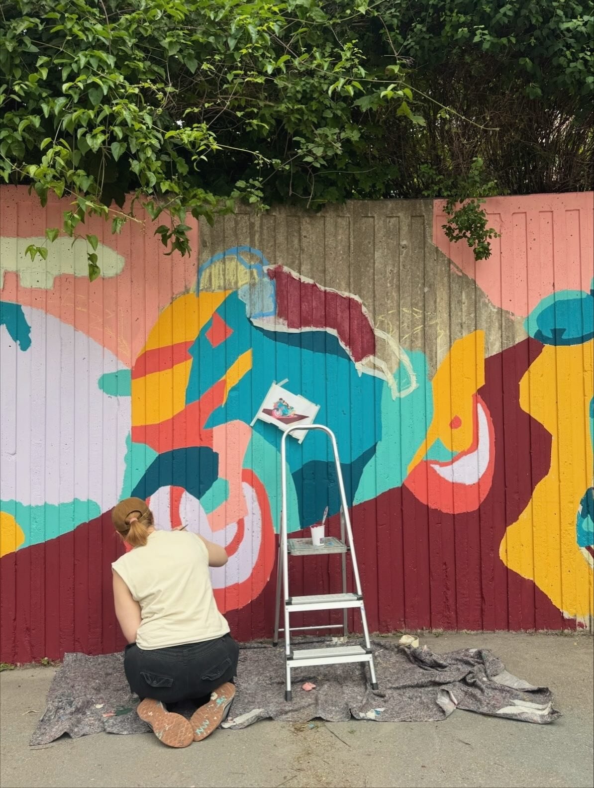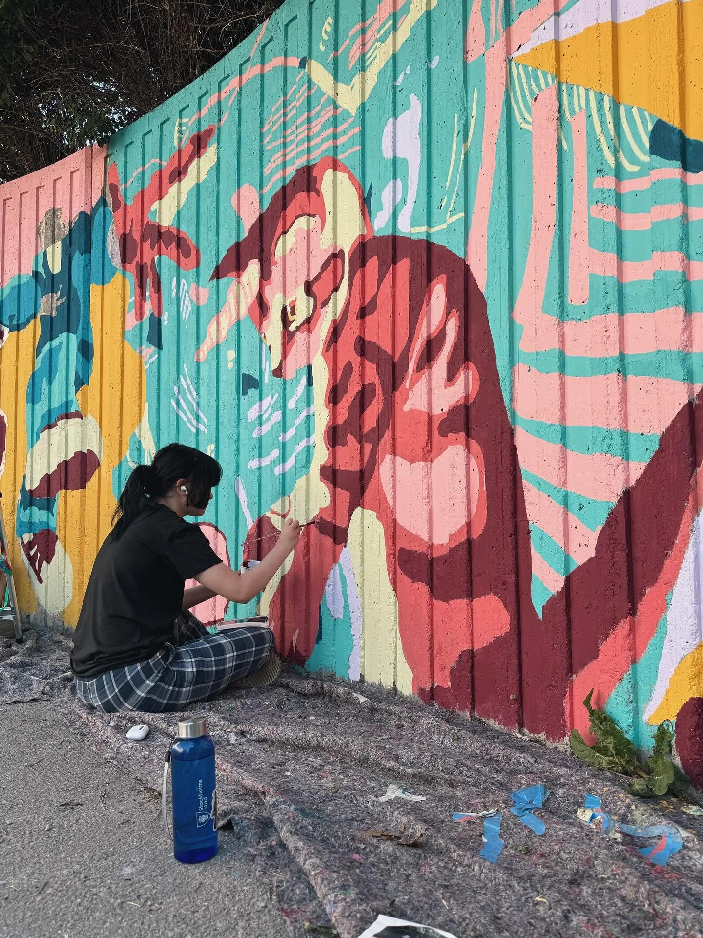 I den här workshopen skapar deltagarna bilderna till målningen i en app som heter Procreate eller med penna och papper, bilderna tejpas sedan upp på väggen och fälten fylls i med miljövänlig och väderbeständig färg. Det blir en målning som kan hålla i decennier.