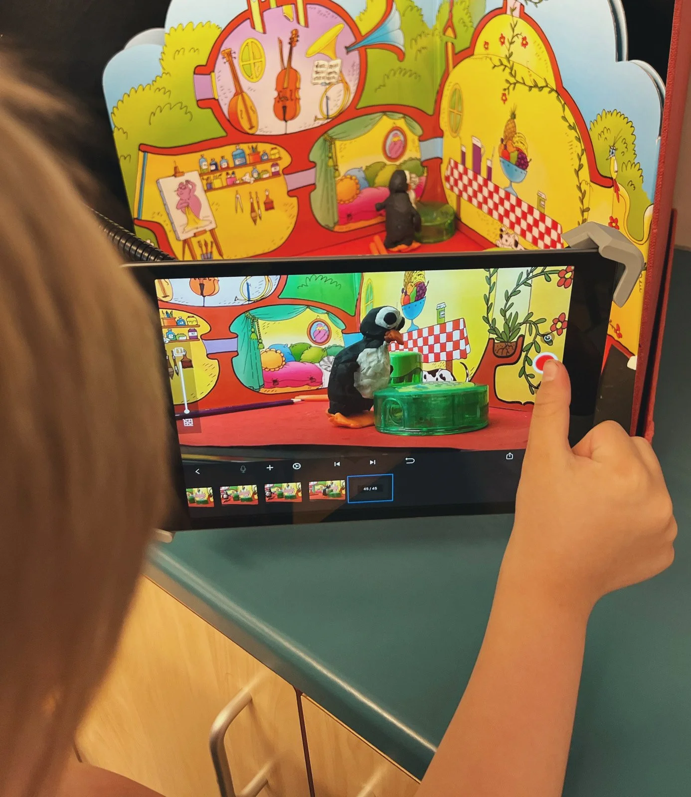 Dagen avslutas med att eleverna redigerar animationerna i appen iMovie eller CapCut. Alla workshops avslutas med en filmvisning. Filmerna blir någon minut långa och görs helt av eleverna men med lite hjälp från oss.