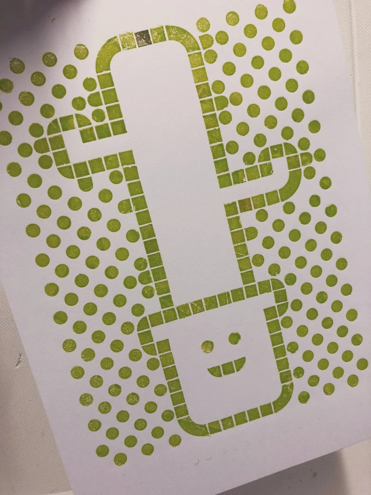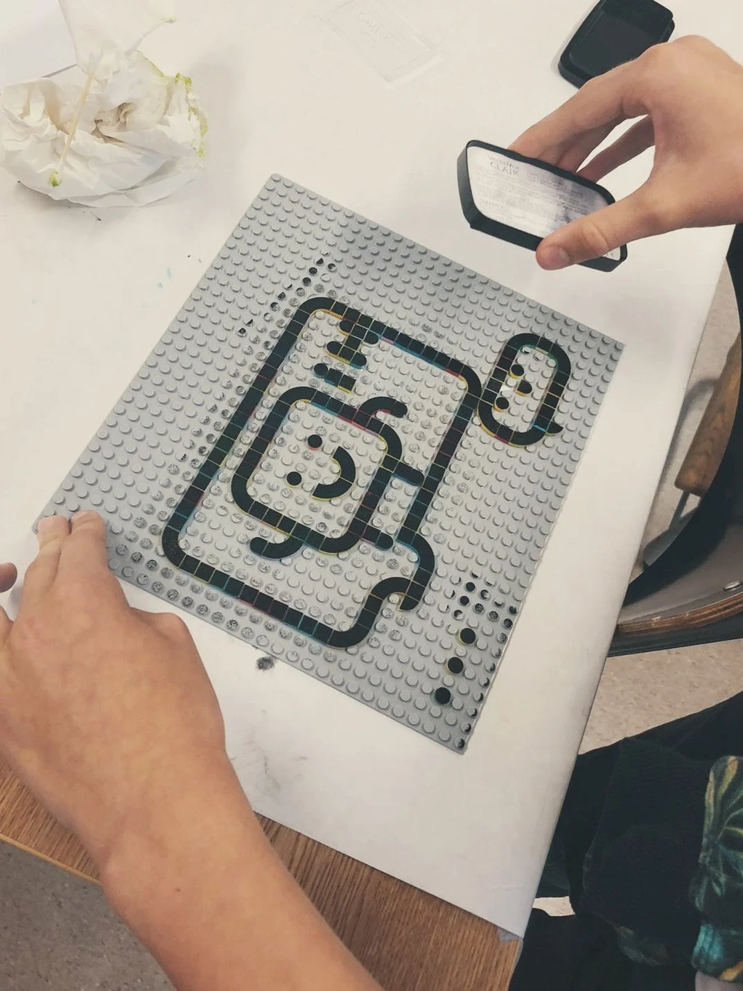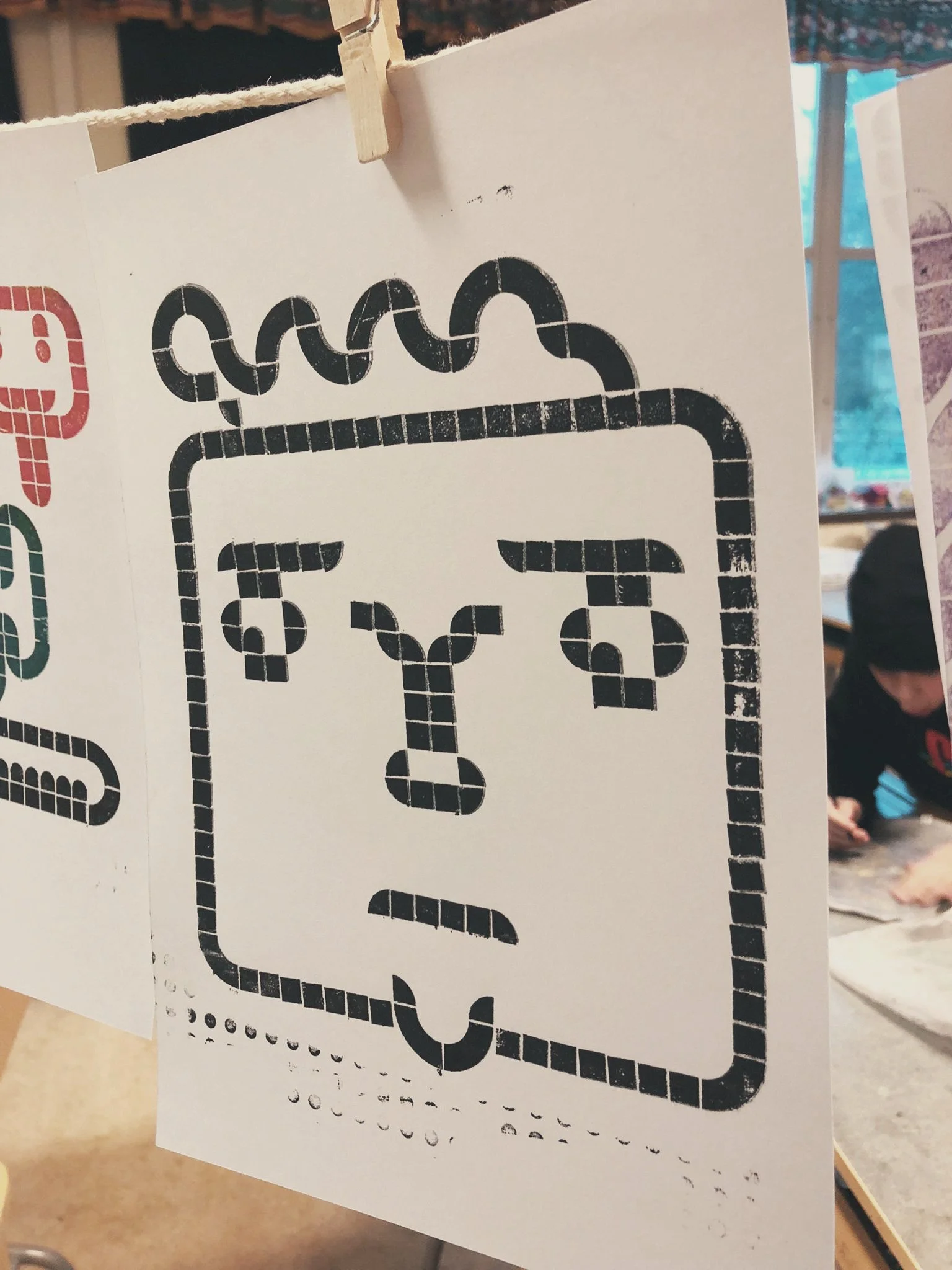 I den här workshopen får eleverna utforska grafiska tryck med hjälp av Lego Dots och en specialbeställd tryckpress från USA som heter Provisional Press.
